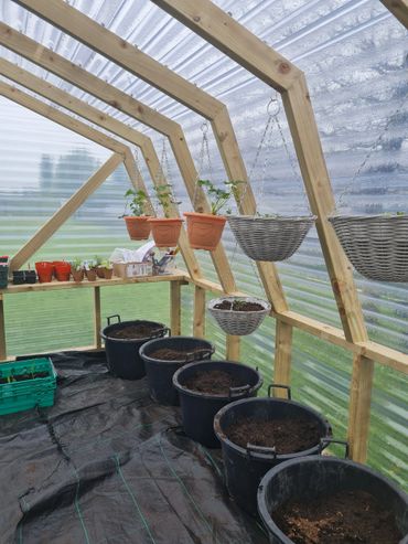Our Heptagon House came during the Easter holidays. We have been very busy in the garden since its arrival. We have sown potatoes, tomatoes, lettuce, onions, sweetcorn, cucumber, herbs, radish, peas and sunflowers.